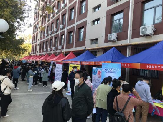 在桃李园七号宿舍楼下举行2020年秋季招聘会。本次招聘会共有28家用人单位参会,覆盖金融、银行、证券、教育、互联网、物流等多个行业领域,提供就业岗位百余个,共收到简历500余份。