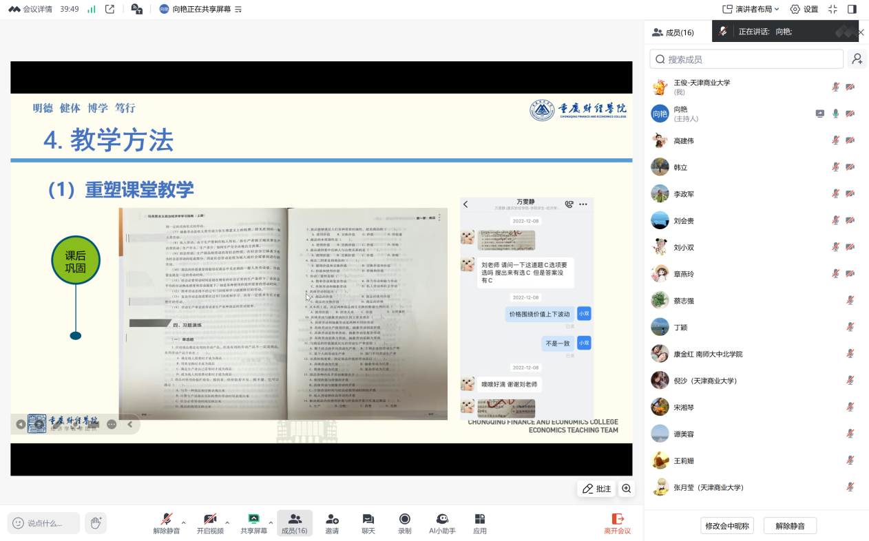 会上,重庆财经学院李政军教授、向艳老师详细分享了该校政治经济学课程组在教学设计、课堂教学方式重塑等方面的宝贵经验。宁夏大学的韩立教授介绍了其教学团队在使用AI技术促进教学改革方面所做的多项工作,分享了他们在智慧课程建设方面的宝贵经验。包子漫画