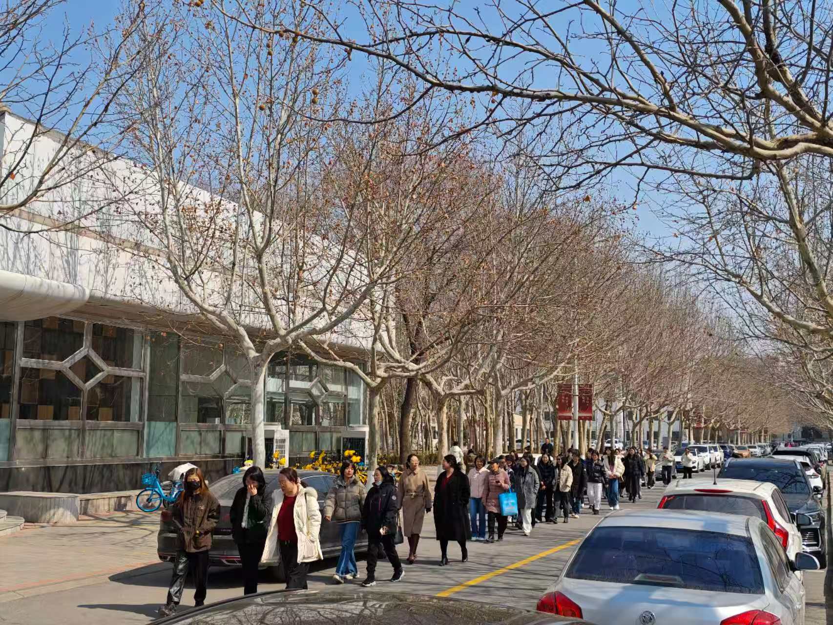 门口准时集结。随着活动开始的信号发出,大家迈着轻盈的步伐踏上春日之旅。沿途海棠路新绿初绽,迎春路花香浮动,行至体育场开阔地带时,更有女教职工即兴分享节日感悟:“平日忙碌于教学科研,难得与同事共赏校园春色,这份‘健步之约’让身心都充满能量。”队伍沿白杨路、梧桐路蜿蜒前行,桃李路上的欢声笑语与枝头初绽的花苞相映成趣,构成一幅生机盎然的春日画卷。全程1.5公里的路线既兼顾运动强度,又让大家在漫步中感受校园之美,交流工作生活点滴,增进了彼此情谊。